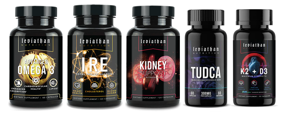 This stack includes: ADVANCED OMEGA 3 + IRE + Kidney Support + TUDCA + K2&D3