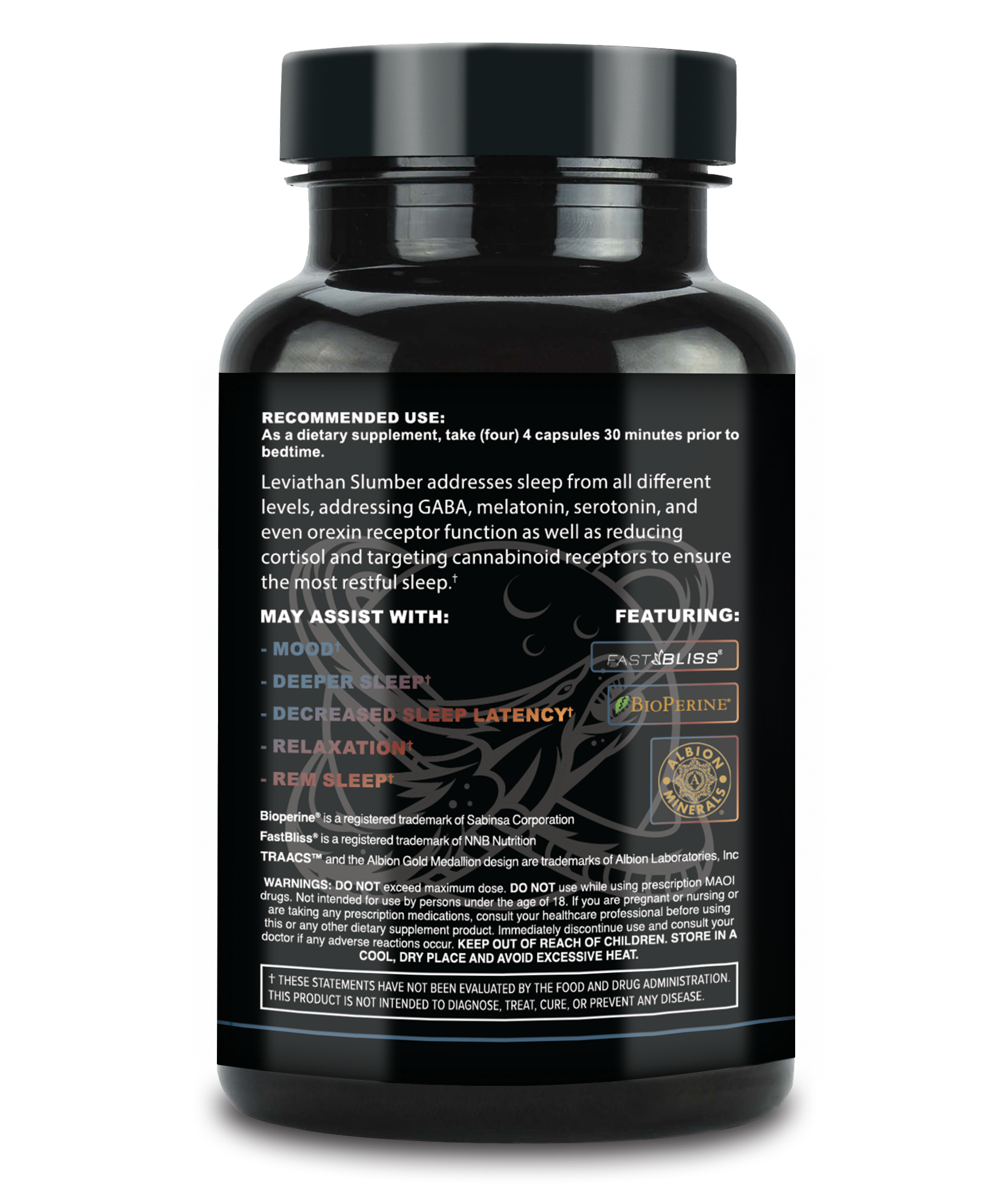HOW DOES IT WORK? SLUMBER works by targeting various systems responsible for better quality of sleep such GABA, melatonin, serotonin, and orexin receptors as well as reducing cortisol and targeting cannabinoid receptors to ensure the most restful sleep.