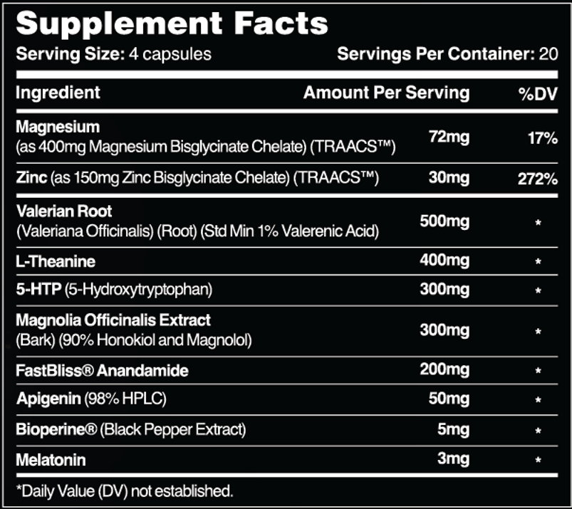 -50mg Apigenin: Targets the Orexin receptor, which is another receptor that plays a role in sleep. found in trace amounts in lemon balm, responsible for sleep effects of these ingredients,
